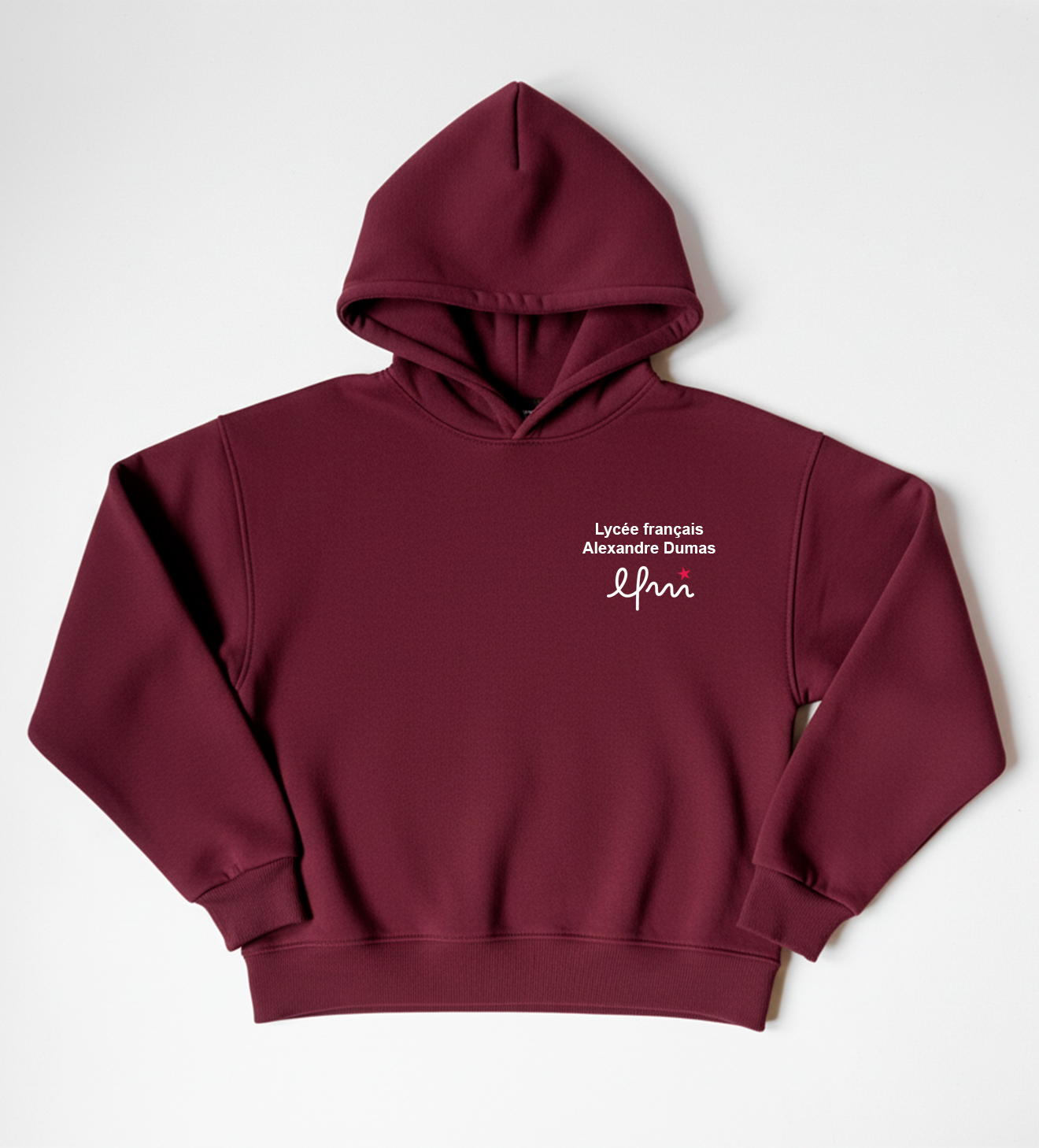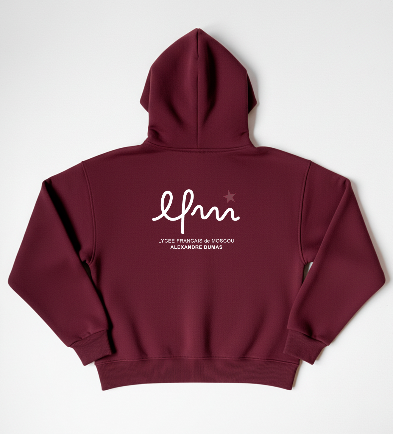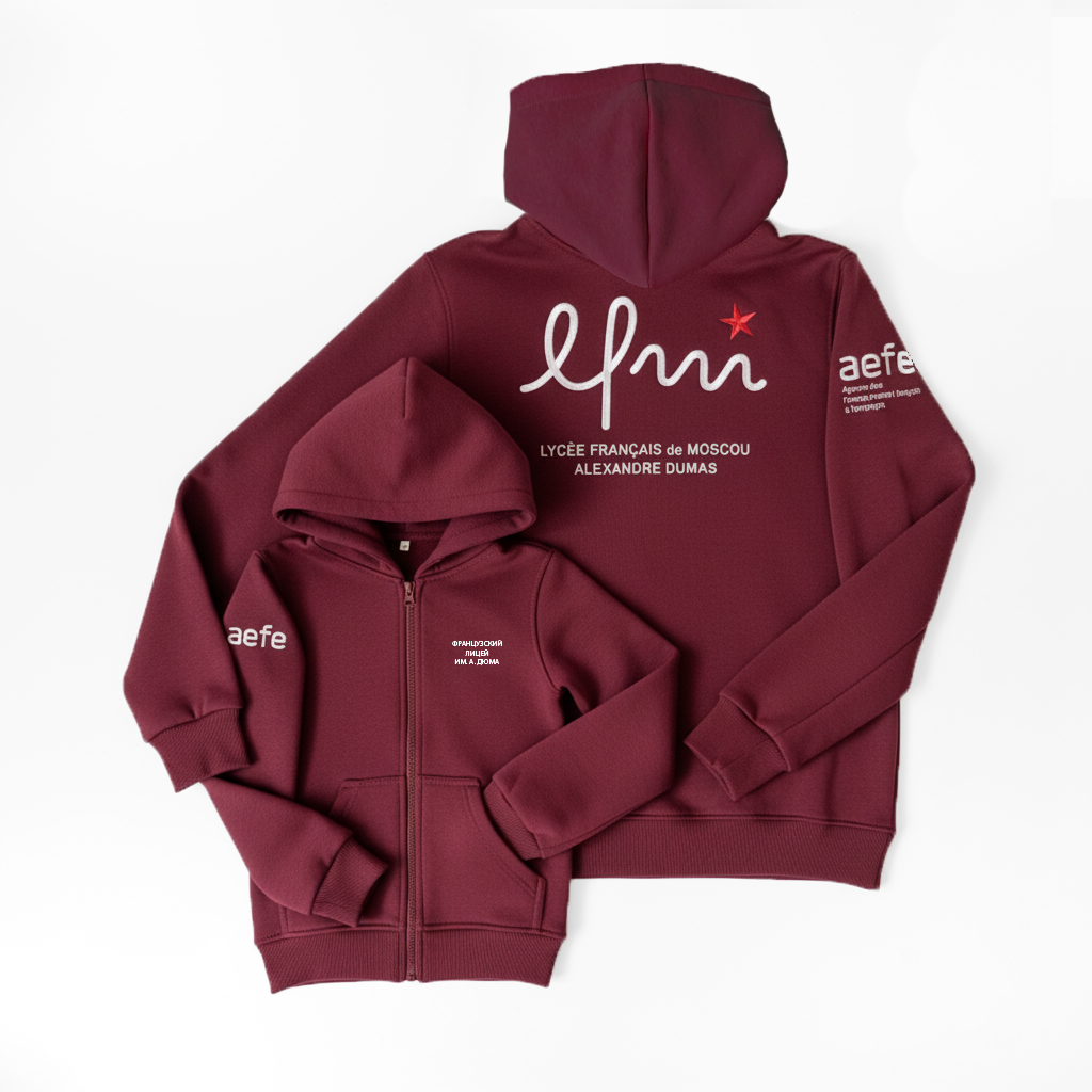 Hoodie bordeaux avec fermeture éclair, avec deux poches.