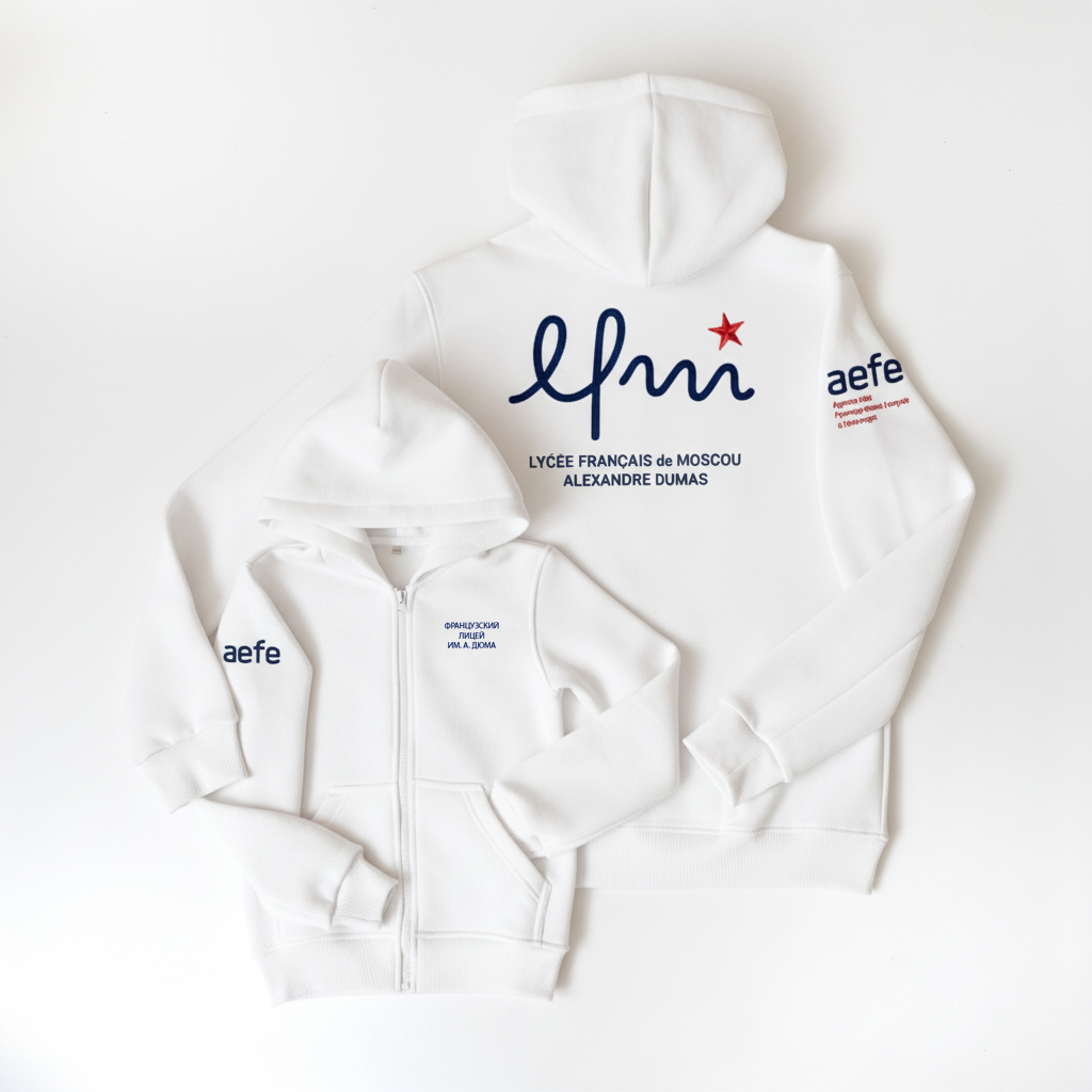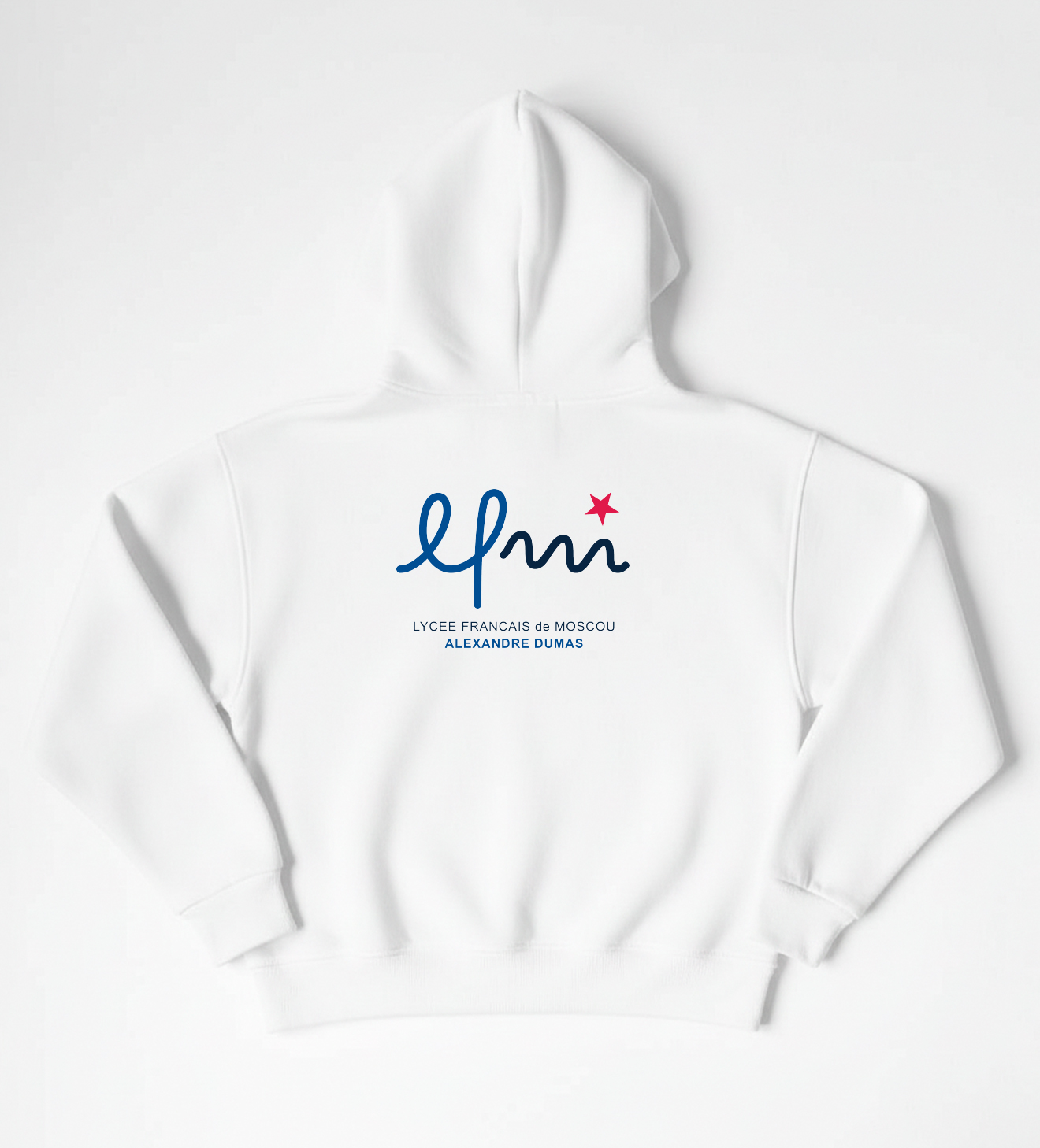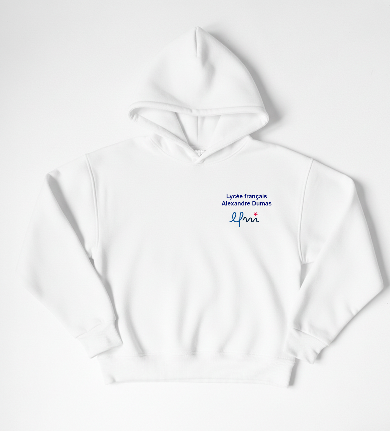 Hoodie blanc avec fermeture éclair, avec deux poches.