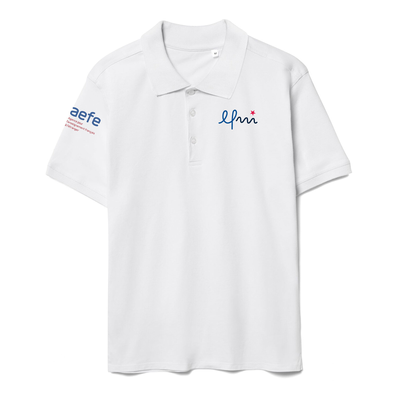 T-shirt polo coupe homme, blanc ou bleu foncé.